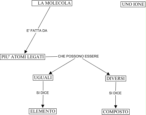 This Concept Map, created with IHMC CmapTools, has information related to: LA MOLECOLA, LA MOLECOLA E' FATTA DA PIU' ATOMI LEGATI, UGUALI SI DICE ELEMENTO, DIVERSI SI DICE COMPOSTO, PIU' ATOMI LEGATI CHE POSSONO ESSERE UGUALI, PIU' ATOMI LEGATI CHE POSSONO ESSERE DIVERSI