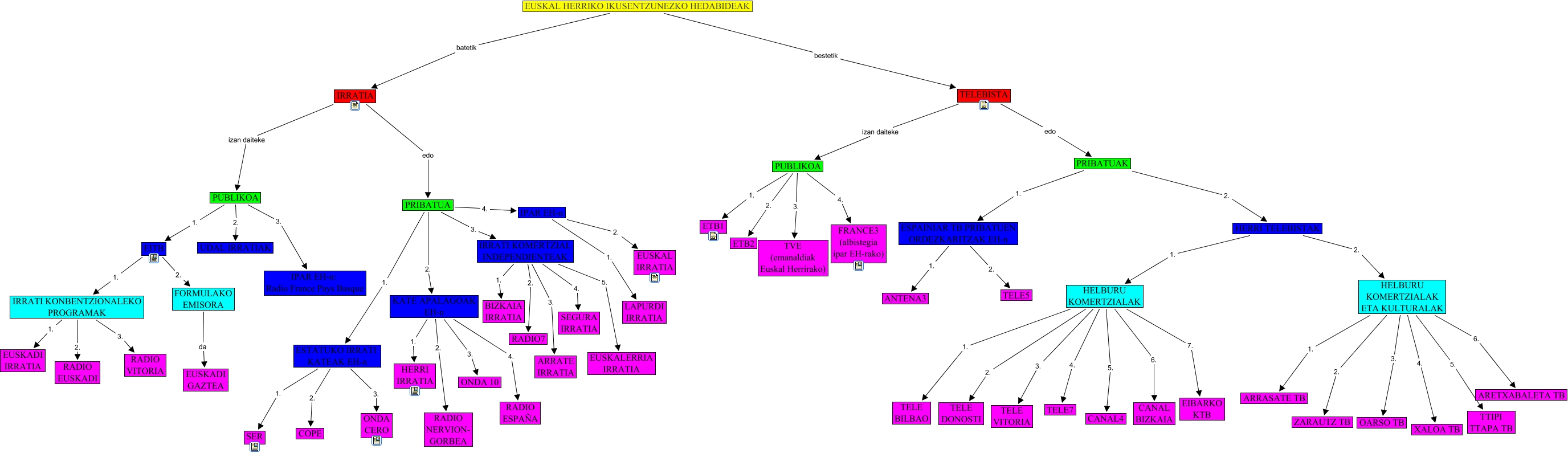 Este Cmap, tiene información relacionada con: AITZIAINI, HELBURU KOMERTZIALAK 4. TELE7, HELBURU KOMERTZIALAK 2. TELE DONOSTI, ESPAINIAR TB PRIBATUEN ORDEZKARITZAK EH-n 1. ANTENA3, IRRATI KONBENTZIONALEKO PROGRAMAK 2. RADIO EUSKADI, HELBURU KOMERTZIALAK ETA KULTURALAK 2. ZARAUTZ TB, HELBURU KOMERTZIALAK ETA KULTURALAK 4. XALOA TB, PUBLIKOA 3. TVE (emanaldiak Euskal Herrirako), HELBURU KOMERTZIALAK ETA KULTURALAK 3. OARSO TB, PUBLIKOA 4. FRANCE3 (albistegia ipar EH-rako), KATE APALAGOAK EH-n 1. HERRI IRRATIA, ESTATUKO IRRATI KATEAK EH-n 1. SER, IPAR EH-n 2. EUSKAL IRRATIA, HERRI TELEBISTAK 1. HELBURU KOMERTZIALAK, TELEBISTA izan daiteke PUBLIKOA, EITB 2. FORMULAKO EMISORA, IRRATI KOMERTZIAL INDEPENDIENTEAK 5. EUSKALERRIA IRRATIA, PRIBATUA 1. ESTATUKO IRRATI KATEAK EH-n, IRRATIA edo PRIBATUA, PUBLIKOA 3. IPAR EH-n: Radio France Pays Basque, IRRATI KOMERTZIAL INDEPENDIENTEAK 3. ARRATE IRRATIA