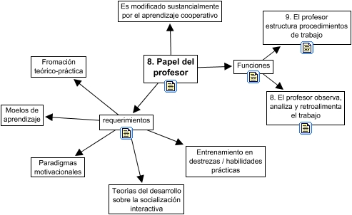 Este Cmap, tiene información relacionada con: Función del profesor, 8. Papel del profesor ???? Es modificado sustancialmente por el aprendizaje cooperativo, requerimientos ???? Fromación teórico-práctica, Funciones ???? 9. El profesor estructura procedimientos de trabajo, Funciones ???? 8. El profesor observa, analiza y retroalimenta el trabajo, 8. Papel del profesor ???? requerimientos, requerimientos ???? Entrenamiento en destrezas / habilidades prácticas, requerimientos ???? Paradigmas motivacionales, requerimientos ???? Teorías del desarrollo sobre la socialización interactiva, requerimientos ???? Moelos de aprendizaje, 8. Papel del profesor ???? Funciones