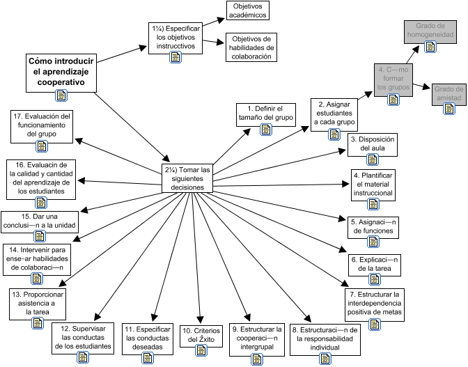This Concept Map, created with IHMC CmapTools, has information related to: Implantación, 2. Asignar estudiantes a cada grupo ???? 4. C—mo formar los grupos, 2¼) Tomar las siguientes decisiones ???? 15. Dar una conclusi—n a la unidad, 4. C—mo formar los grupos ???? Grado de amistad, 1¼) Especificar los objetivos instrucctivos ???? Objetivos académicos, 2¼) Tomar las siguientes decisiones ???? 10. Criterios del Žxito, 2¼) Tomar las siguientes decisiones ???? 6. Explicaci—n de la tarea, Cómo introducir el aprendizaje cooperativo ???? 1¼) Especificar los objetivos instrucctivos, 2¼) Tomar las siguientes decisiones ???? 7. Estructurar la interdependencia positiva de metas, 2¼) Tomar las siguientes decisiones ???? 11. Especificar las conductas deseadas, 2¼) Tomar las siguientes decisiones ???? 5. Asignaci—n de funciones, 2¼) Tomar las siguientes decisiones ???? 4. Plantificar el material instruccional, 2¼) Tomar las siguientes decisiones ???? 9. Estructurar la cooperaci—n intergrupal, 2¼) Tomar las siguientes decisiones ???? 13. Proporcionar asistencia a la tarea, 2¼) Tomar las siguientes decisiones ???? 1. Definir el tamaño del grupo, 2¼) Tomar las siguientes decisiones ???? 2. Asignar estudiantes a cada grupo, 2¼) Tomar las siguientes decisiones ???? 14. Intervenir para ense–ar habilidades de colaboraci—n, 2¼) Tomar las siguientes decisiones ???? 17. Evaluación del funcionamiento del grupo, 2¼) Tomar las siguientes decisiones ???? 3. Disposición del aula, 2¼) Tomar las siguientes decisiones ???? 12. Supervisar las conductas de los estudiantes, Cómo introducir el aprendizaje cooperativo ???? 2¼) Tomar las siguientes decisiones