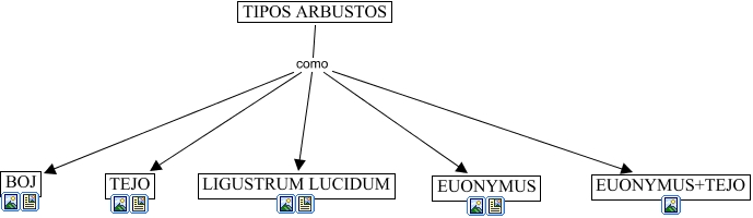 This Concept Map, created with IHMC CmapTools, has information related to: arbustos, TIPOS ARBUSTOS como TEJO, TIPOS ARBUSTOS como LIGUSTRUM LUCIDUM, TIPOS ARBUSTOS como BOJ, TIPOS ARBUSTOS como EUONYMUS, TIPOS ARBUSTOS como EUONYMUS+TEJO