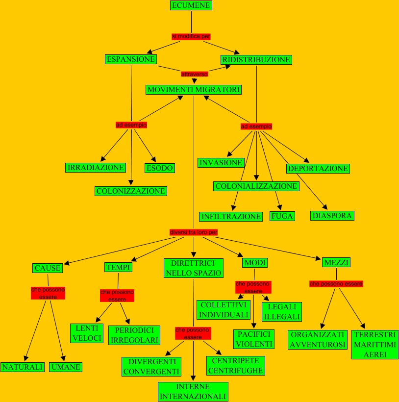 This Concept Map, created with IHMC CmapTools, has information related to: MOVIMENTI MIGRATORI, RIDISTRIBUZIONE ad esempio DIASPORA, MODI che possono essere COLLETTIVI INDIVIDUALI, MEZZI che possono essere TERRESTRI MARITTIMI AEREI, MOVIMENTI MIGRATORI diversi tra loro per TEMPI, MODI che possono essere LEGALI ILLEGALI, ESPANSIONE attraverso MOVIMENTI MIGRATORI, RIDISTRIBUZIONE ad esempio DEPORTAZIONE, ESPANSIONE ad esempio COLONIZZAZIONE, RIDISTRIBUZIONE ad esempio INFILTRAZIONE, ESPANSIONE ad esempio ESODO, RIDISTRIBUZIONE ad esempio MOVIMENTI MIGRATORI, ECUMENE si modifica per RIDISTRIBUZIONE, DIRETTRICI NELLO SPAZIO che possono essere INTERNE INTERNAZIONALI, ESPANSIONE ad esempio MOVIMENTI MIGRATORI, CAUSE che possono essere NATURALI, MOVIMENTI MIGRATORI diversi tra loro per CAUSE, ESPANSIONE attraverso RIDISTRIBUZIONE, MOVIMENTI MIGRATORI diversi tra loro per MEZZI, TEMPI che possono essere PERIODICI IRREGOLARI, RIDISTRIBUZIONE ad esempio INVASIONE