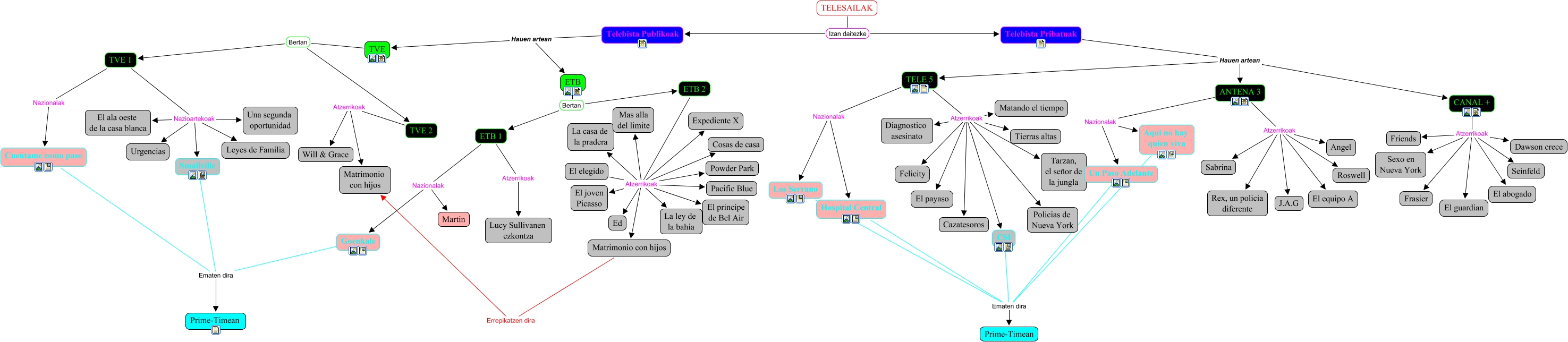 Este Cmap, tiene información relacionada con: Telesailak, TVE 1 Nazioartekoak Urgencias, TELE 5 Atzerrikoak El payaso, TVE Bertan TVE 2, Telebista Pribatuak Hauen artean ANTENA 3, ANTENA 3 Nazionalak Aqui no hay quien viva, ETB 1 Nazionalak Martin, El elegido Atzerrikoak Mas alla del limite, Smallville Ematen dira Prime-Timean, Telebista Publikoak Hauen artean ETB, TVE 1 Nazioartekoak Una segunda oportunidad, El elegido Atzerrikoak El principe de Bel Air, ANTENA 3 Atzerrikoak El equipo A, TELE 5 Atzerrikoak CSI, El elegido Atzerrikoak Expediente X, TELE 5 Atzerrikoak Policias de Nueva York, ANTENA 3 Atzerrikoak J.A.G, ETB 2 Atzerrikoak Pacific Blue, TELESAILAK Izan daitezke Telebista Pribatuak, TELE 5 Atzerrikoak Matando el tiempo, TVE 1 Nazionalak Cuentame como paso