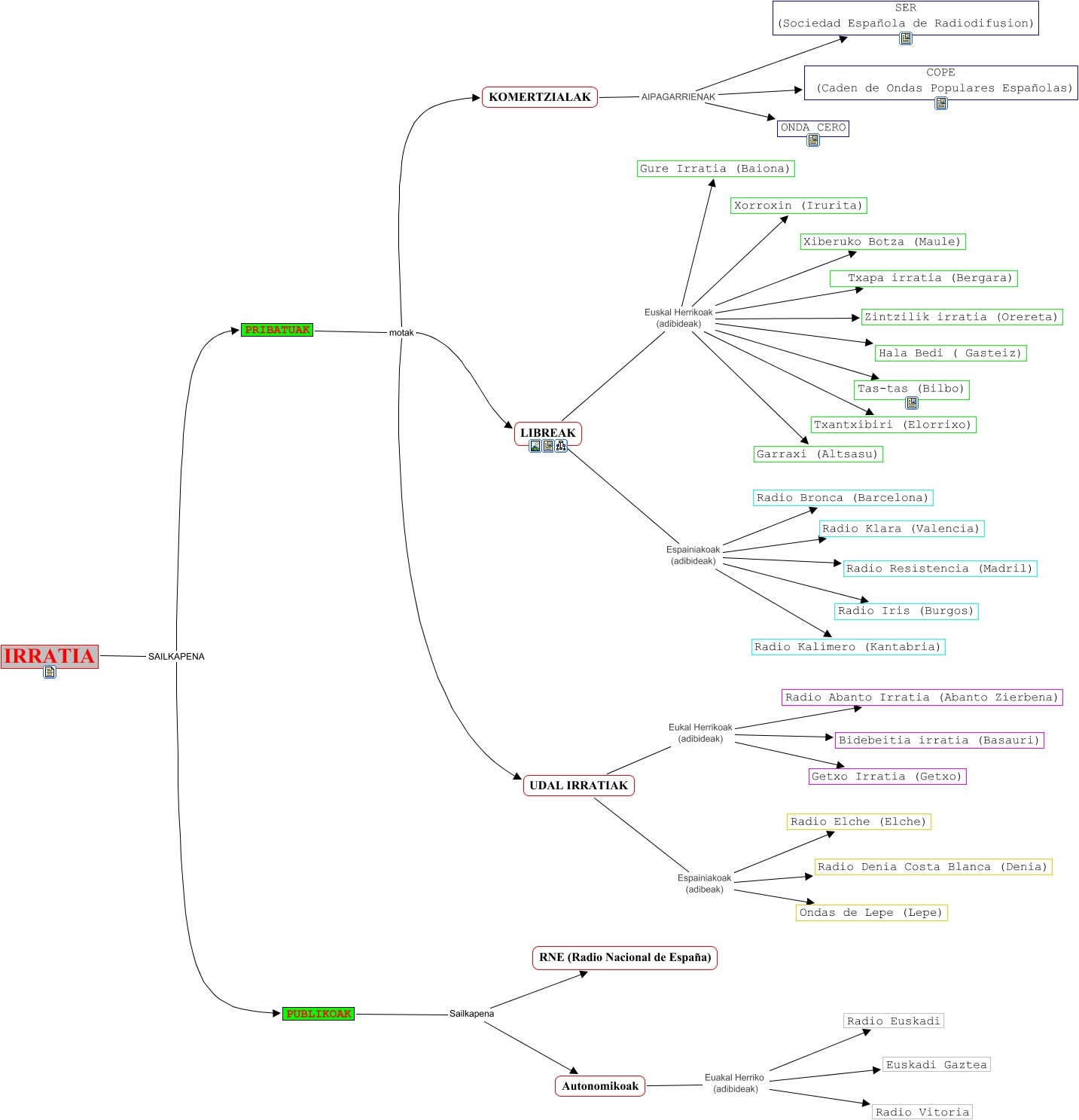 Este Cmap, tiene información relacionada con: Irratia, LIBREAK Euskal Herrikoak (adibideak) Txantxibiri (Elorrixo), LIBREAK Euskal Herrikoak (adibideak) Txapa irratia (Bergara), Autonomikoak Euakal Herriko (adibideak) Radio Euskadi, LIBREAK Euskal Herrikoak (adibideak) Hala Bedi ( Gasteiz), PRIBATUAK motak LIBREAK, PRIBATUAK motak UDAL IRRATIAK, UDAL IRRATIAK Eukal Herrikoak (adibideak) Radio Abanto Irratia (Abanto Zierbena), LIBREAK Espainiakoak (adibideak) Radio Klara (Valencia), KOMERTZIALAK AIPAGARRIENAK SER (Sociedad Española de Radiodifusion), UDAL IRRATIAK Espainiakoak (adibeak) Radio Denia Costa Blanca (Denia), LIBREAK Espainiakoak (adibideak) Radio Resistencia (Madril), LIBREAK Euskal Herrikoak (adibideak) Zintzilik irratia (Orereta), PRIBATUAK motak KOMERTZIALAK, LIBREAK Euskal Herrikoak (adibideak) Xorroxin (Irurita), UDAL IRRATIAK Eukal Herrikoak (adibideak) Bidebeitia irratia (Basauri), UDAL IRRATIAK Espainiakoak (adibeak) Radio Elche (Elche), LIBREAK Euskal Herrikoak (adibideak) Gure Irratia (Baiona), UDAL IRRATIAK Eukal Herrikoak (adibideak) Getxo Irratia (Getxo), LIBREAK Euskal Herrikoak (adibideak) Xiberuko Botza (Maule), LIBREAK Espainiakoak (adibideak) Radio Kalimero (Kantabria)