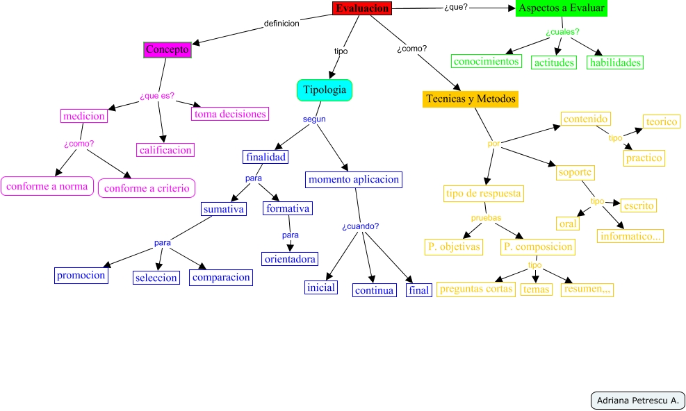 Este Cmap, tiene información relacionada con: Evaluacion, formativa para orientadora, soporte tipo escrito, Aspectos a Evaluar ¿cuales? conocimientos, Tecnicas y Metodos por tipo de respuesta, Tecnicas y Metodos por soporte, soporte tipo oral, sumativa para promocion, Evaluacion ¿que? Aspectos a Evaluar, finalidad para sumativa, Tipologia segun finalidad, Concepto ¿que es? medicion, Evaluacion ¿que? Aspectos a Evaluar, medicion ¿como? conforme a norma, Evaluacion definicion Concepto, tipo de respuesta pruebas P. composicion, momento aplicacion ¿cuando? inicial, Tipologia segun momento aplicacion, Concepto ¿que es? calificacion, Concepto ¿que es? toma decisiones, Tecnicas y Metodos por contenido