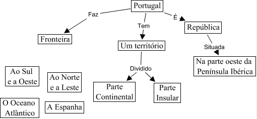 This Concept Map, created with IHMC CmapTools, has information related to: Mapa_Portugal, República Situada Na parte oeste da Península Ibérica, Portugal Tem Um território, Portugal Faz Fronteira, Um território Dividido Parte Insular, Um território Dividido Parte Continental, Portugal É República