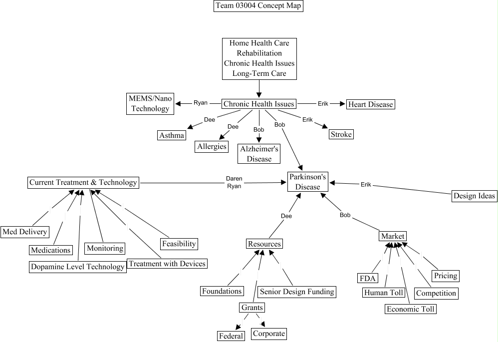 This Concept Map, created with IHMC CmapTools, has information related to: 03004 Fall Concept Map, Med Delivery Current Treatment & Technology, Chronic Health Issues Dee Asthma, Grants Resources, Grants Corporate, Home Health Care Rehabilitation Chronic Health Issues Long-Term Care Chronic Health Issues, Chronic Health Issues Erik Heart Disease, Design Ideas Erik Parkinson's Disease, Chronic Health Issues Bob Alzheimer's Disease, Chronic Health Issues Dee Allergies, Chronic Health Issues Bob Parkinson's Disease, Market Bob Parkinson's Disease, Chronic Health Issues Erik Stroke, Grants Federal, Senior Design Funding Resources, FDA Market, Economic Toll Market, Current Treatment & Technology Daren Ryan Parkinson's Disease, Pricing Market, Medications Current Treatment & Technology, Human Toll Market