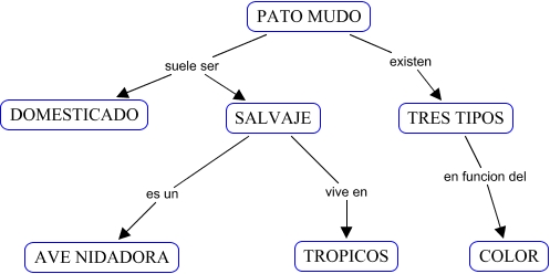 This Concept Map, created with IHMC CmapTools, has information related to: PATO MUDO, PATO MUDO suele ser SALVAJE, PATO MUDO suele ser DOMESTICADO, SALVAJE vive en TROPICOS, SALVAJE es un AVE NIDADORA, TRES TIPOS en funcion del COLOR, PATO MUDO existen TRES TIPOS