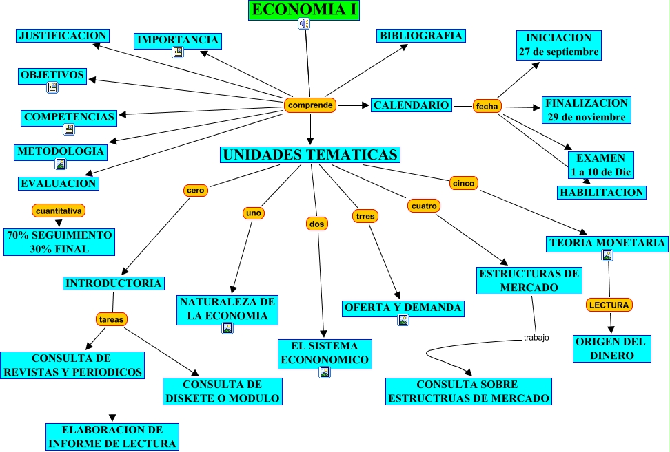 This Concept Map, created with IHMC CmapTools, has information related to: economia-uno, ECONOMIA I comprende UNIDADES TEMATICAS, ECONOMIA I comprende EVALUACION, ECONOMIA I comprende OBJETIVOS, INTRODUCTORIA tareas CONSULTA DE DISKETE O MODULO, UNIDADES TEMATICAS uno NATURALEZA DE LA ECONOMIA, UNIDADES TEMATICAS cuatro ESTRUCTURAS DE MERCADO, ECONOMIA I comprende IMPORTANCIA, CALENDARIO fecha HABILITACION, ECONOMIA I comprende EVALUACION, ECONOMIA I comprende OBJETIVOS, ECONOMIA I comprende BIBLIOGRAFIA, ECONOMIA I comprende JUSTIFICACION, ECONOMIA I comprende COMPETENCIAS, ECONOMIA I comprende BIBLIOGRAFIA, ECONOMIA I comprende COMPETENCIAS, UNIDADES TEMATICAS trres OFERTA Y DEMANDA, TEORIA MONETARIA LECTURA ORIGEN DEL DINERO, EVALUACION cuantitativa 70% SEGUIMIENTO 30% FINAL, ECONOMIA I comprende METODOLOGIA, ECONOMIA I comprende IMPORTANCIA
