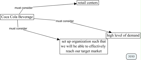 Este Cmap, tiene información relacionada con: Coca Cola, Coca Cola Beverage must consider retail centers, Coca Cola Beverage must consider high level of demand, Coca Cola Beverage must consider set up organization such that we will be able to effectively reach our target market