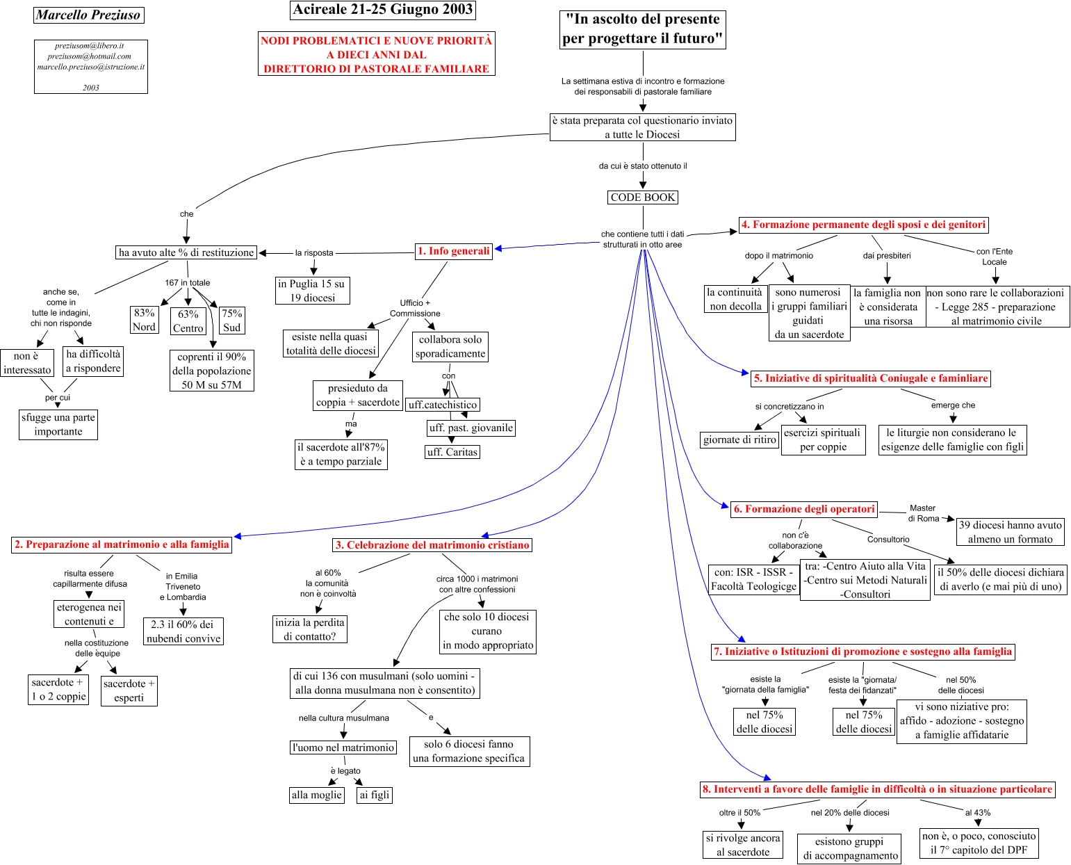 This Concept Map, created with IHMC CmapTools, has information related to: Settimana_Estiva_Acireale, ha avuto alte % di restituzione 167 in totale coprenti il 90% della popolazione 50 M su 57M, 6. Formazione degli operatori Consultorio il 50% delle diocesi dichiara di averlo (e mai più di uno), 7. Iniziative o Istituzioni di promozione e sostegno alla famiglia esiste la "giornata della famiglia" nel 75% delle diocesi, ha avuto alte % di restituzione anche se, come in tutte le indagini, chi non risponde non è interessato, 3. Celebrazione del matrimonio cristiano circa 1000 i matrimoni con altre confessioni di cui 136 con musulmani (solo uomini - alla donna musulmana non è consentito), 7. Iniziative o Istituzioni di promozione e sostegno alla famiglia esiste la "giornata/ festa dei fidanzati" nel 75% delle diocesi, ha avuto alte % di restituzione 167 in totale 63% Centro, collabora solo sporadicamente con uff. past. giovanile, l'uomo nel matrimonio è legato ai figli, CODE BOOK che contiene tutti i dati strutturati in otto aree 6. Formazione degli operatori, 8. Interventi a favore delle famiglie in difficoltà o in situazione particolare oltre il 50% si rivolge ancora al sacerdote, 6. Formazione degli operatori non c'è collaborazione con: ISR - ISSR - Facoltà Teologicge, CODE BOOK che contiene tutti i dati strutturati in otto aree 2. Preparazione al matrimonio e alla famiglia, CODE BOOK che contiene tutti i dati strutturati in otto aree 5. Iniziative di spiritualità Coniugale e faminliare, ha avuto alte % di restituzione anche se, come in tutte le indagini, chi non risponde ha difficoltà a rispondere, presieduto da coppia + sacerdote ma il sacerdote all'87% è a tempo parziale, 5. Iniziative di spiritualità Coniugale e faminliare si concretizzano in giornate di ritiro, 3. Celebrazione del matrimonio cristiano circa 1000 i matrimoni con altre confessioni che solo 10 diocesi curano in modo appropriato, è stata preparata col questionario inviato a tutte le Diocesi che ha avuto alte % di restituzione, CODE BOOK che contiene tutti i dati strutturati in otto aree 3. Celebrazione del matrimonio cristiano