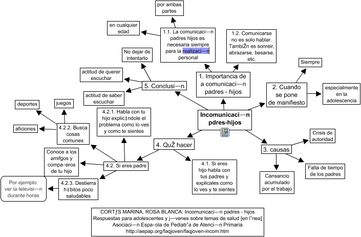 Este Cmap, tiene información relacionada con: Incomunicaci—n padres «hijos, 4.2.2. Busca cosas comunes ???? aficiones, 5. Conclusi—n ???? actitud de querer escuchar, 5. Conclusi—n ???? actitud de saber escuchar, 3. causas ???? Falta de tiempo de los padres, 2. Cuando se pone de manifiesto ???? especialmente en la adolescencia, 3. causas ???? Cansancio acumulado por el trabajo, 4.2. Si eres padre ???? 4.2.3. Destierra h‡bitos poco saludables, 1.1. La comunicaci—n padres hijos es necesaria siempre para la realizaci—n personal ???? en cualquier edad, 4.2.3. Destierra h‡bitos poco saludables ???? Por ejemplo: ver la televisi—n durante horas, 1.1. La comunicaci—n padres hijos es necesaria siempre para la realizaci—n personal ???? por ambas partes, 4.2. Si eres padre ???? Conoce a los amifgos y compa–eros de tu hijo, 4.2.2. Busca cosas comunes ???? deportes, Incomunicaci—n pdres-hijos ???? 2. Cuando se pone de manifiesto, 5. Conclusi—n ???? No dejar de intentarlo, 1. Importancia de a comunicaci—n padres - hijos ???? 1.2. Comunicarse no es solo hablar. TambiŽn es sonreir, abrazarse, besarse, etc., 4.2.2. Busca cosas comunes ???? juegos, 2. Cuando se pone de manifiesto ???? Siempre, Incomunicaci—n pdres-hijos ???? 4. QuŽ hacer, 4. QuŽ hacer ???? 4.1. Si eres hijo habla con tus padres y explicales como lo ves y te sientes, 4. QuŽ hacer ???? 4.2. Si eres padre