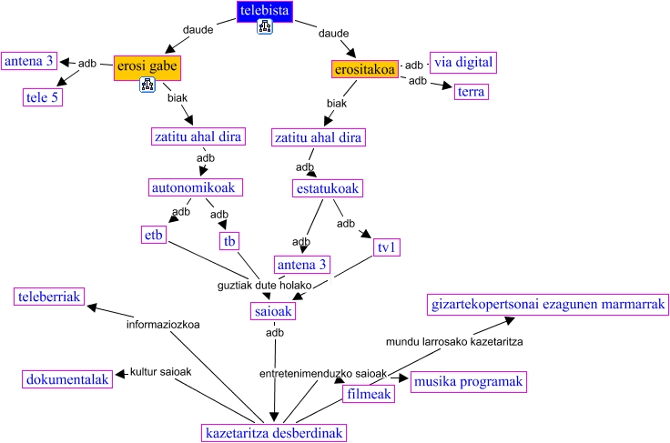 This Concept Map, created with IHMC CmapTools, has information related to: telebista, saioak adb kazetaritza desberdinak, antena 3 guztiak dute holako saioak, kazetaritza desberdinak informaziozkoa teleberriak, estatukoak adb antena 3, kazetaritza desberdinak entretenimenduzko saioak filmeak, zatitu ahal dira adb estatukoak, erositakoa biak zatitu ahal dira, autonomikoak adb etb, erositakoa adb via digital, erosi gabe adb antena 3, estatukoak adb tv1, autonomikoak adb tb, erosi gabe biak zatitu ahal dira, erositakoa adb terra, telebista daude erosi gabe, etb guztiak dute holako saioak, kazetaritza desberdinak mundu larrosako kazetaritza gizartekopertsonai ezagunen marmarrak, tb guztiak dute holako saioak, erosi gabe adb tele 5, telebista daude erositakoa