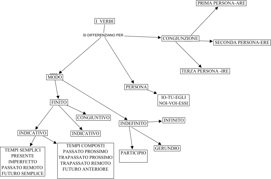 Questa Cmap, creata con IHMC CmapTools, contiene informazioni relative a: MAPPA D' ITALIANO-REGOLE, FINITO ???? INDICATIVO, CONGIUNZIONE ???? PRIMA PERSONA-ARE, I VERBI SI DIFFERENZIANO PER PERSONA, INDEFINITO ???? PARTICIPIO, INDEFINITO ???? INFINITO, CONGIUNZIONE ???? SECONDA PERSONA-ERE, INDEFINITO ???? GERUNDIO, INDICATIVO ???? TEMPI SEMPLICI PRESENTE IMPERFETTO PASSATO REMOTO FUTURO SEMPLICE, MODO ???? FINITO, FINITO ???? INDICATIVO, CONGIUNZIONE ???? TERZA PERSONA -IRE, I VERBI SI DIFFERENZIANO PER CONGIUNZIONE, I VERBI SI DIFFERENZIANO PER MODO, FINITO ???? CONGIUNTIVO, INDICATIVO ???? TEMPI COMPOSTI PASSATO PROSSIMO TRAPASSATO PROSSIMO TRAPASSATO REMOTO FUTURO ANTERIORE, PERSONA ???? IO-TU-EGLI NOI-VOI-ESSI, MODO ???? INDEFINITO