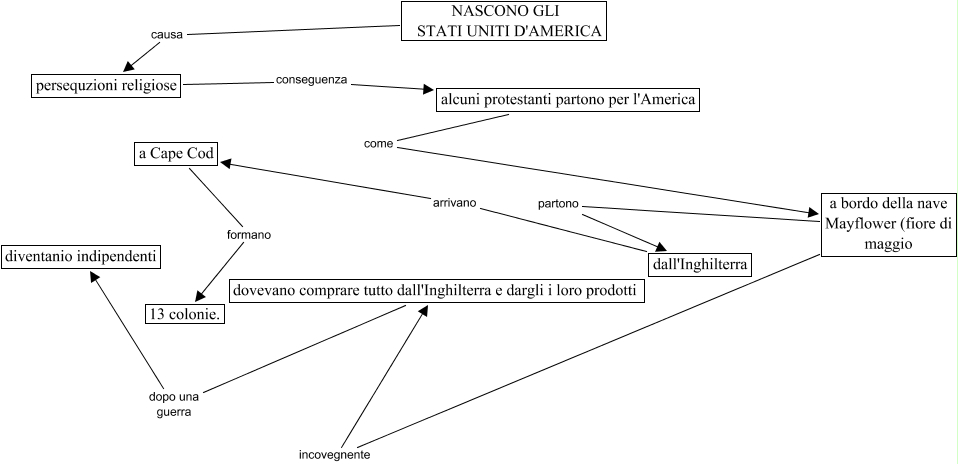 Questa Cmap, creata con IHMC CmapTools, contiene informazioni relative a: STATIUNITI, persequzioni religiose conseguenza alcuni protestanti partono per l'America, a bordo della nave Mayflower (fiore di maggio incovegnente dovevano comprare tutto dall'Inghilterra e dargli i loro prodotti, alcuni protestanti partono per l'America come a bordo della nave Mayflower (fiore di maggio, dall'Inghilterra arrivano a Cape Cod, a bordo della nave Mayflower (fiore di maggio partono dall'Inghilterra, a Cape Cod formano 13 colonie., dovevano comprare tutto dall'Inghilterra e dargli i loro prodotti dopo una guerra diventanio indipendenti, NASCONO GLI STATI UNITI D'AMERICA causa persequzioni religiose