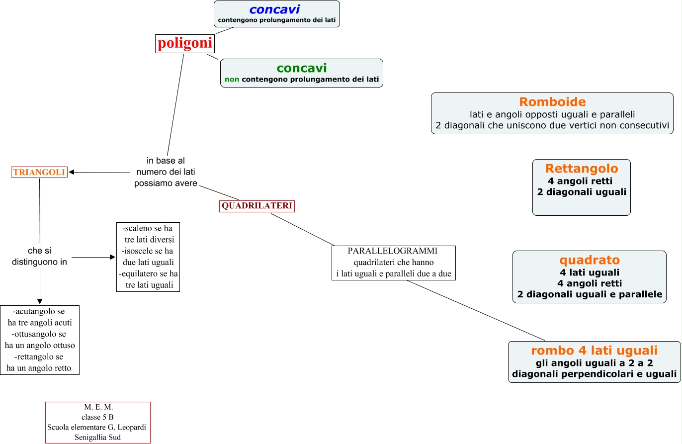 poligoni, poligoni concavi contengono prolungamento dei lati, QUADRILATERI ???? rombo 4 lati uguali gli angoli uguali a 2 a 2 diagonali perpendicolari e uguali, poligoni in base al numero dei lati possiamo avere TRIANGOLI, QUADRILATERI in base al numero dei lati possiamo avere TRIANGOLI, TRIANGOLI che si distinguono in -acutangolo se ha tre angoli acuti -ottusangolo se ha un angolo ottuso -rettangolo se ha un angolo retto, TRIANGOLI che si distinguono in -scaleno se ha tre lati diversi -isoscele se ha due lati uguali -equilatero se ha tre lati uguali, poligoni ???? concavi non contengono prolungamento dei lati