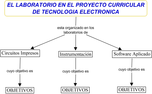 This Concept Map, created with IHMC CmapTools, has information related to: laboratorio, EL LABORATORIO EN EL PROYECTO CURRICULAR DE TECNOLOGIA ELECTRONICA esta organizado en los laboratorios de Instrumentación, Software Aplicado cuyo objetivo es OBJETIVOS, EL LABORATORIO EN EL PROYECTO CURRICULAR DE TECNOLOGIA ELECTRONICA esta organizado en los laboratorios de Software Aplicado, Instrumentación cuyo objetivo es OBJETIVOS, Circuitos Impresos cuyo objetivo es OBJETIVOS, EL LABORATORIO EN EL PROYECTO CURRICULAR DE TECNOLOGIA ELECTRONICA esta organizado en los laboratorios de Circuitos Impresos