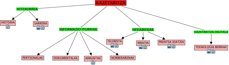 This Concept Map, created with IHMC CmapTools, has information related to: kazetaritza, KAZETARITZA HEDABIDEAK TELEBISTA, KAZETARITZA HEDABIDEAK IRRATIA, KAZETARITZA INFORMAZIO ITURRIAK PERTSONALAK, KAZETARITZA INFORMAZIO ITURRIAK DOKUMENTALAK, KAZETARITZA INFORMAZIO ITURRIAK NORBERARENAK, KAZETARITZA INFORMAZIO ITURRIAK ARRUNTAK, KAZETARITZA HITZAURREA SARRERA, KAZETARITZA KAZETARITZA DIGITALA TEKNOLOGIA BERRIAK, KAZETARITZA HITZAURREA HISTORIA, KAZETARITZA HEDABIDEAK PRENTSA IDATZIA