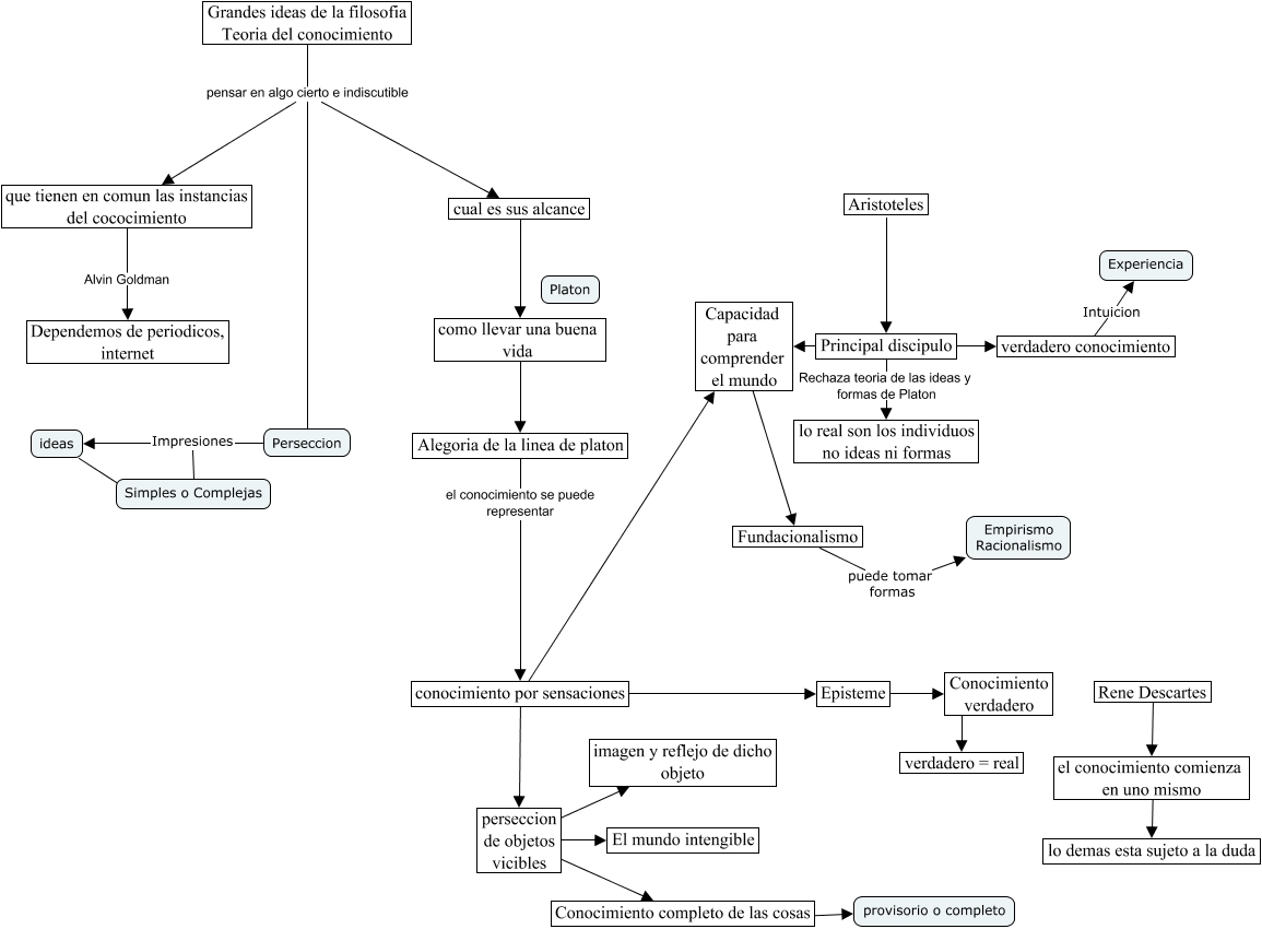 Este Cmap, tiene información relacionada con: seconda rivoluzione industriale, Perseccion Impresiones ideas, verdadero conocimiento Intuicion Experiencia, conocimiento por sensaciones Capacidad para comprender el mundo, Capacidad para comprender el mundo ???? Fundacionalismo, perseccion de objetos vicibles ???? El mundo intengible, perseccion de objetos vicibles ???? Conocimiento completo de las cosas, Grandes ideas de la filosofia Teoria del conocimiento pensar en algo cierto e indiscutible cual es sus alcance, ideas ???? Simples o Complejas, Perseccion Impresiones Simples o Complejas, que tienen en comun las instancias del cococimiento Alvin Goldman Dependemos de periodicos, internet, Grandes ideas de la filosofia Teoria del conocimiento pensar en algo cierto e indiscutible Perseccion, Conocimiento completo de las cosas ???? provisorio o completo, Episteme ???? Conocimiento verdadero, Principal discipulo Rechaza teoria de las ideas y formas de Platon lo real son los individuos no ideas ni formas, Fundacionalismo puede tomar formas Empirismo Racionalismo, Principal discipulo verdadero conocimiento, Principal discipulo Capacidad para comprender el mundo, conocimiento por sensaciones ???? Episteme, como llevar una buena vida Alegoria de la linea de platon, Rene Descartes ???? el conocimiento comienza en uno mismo
