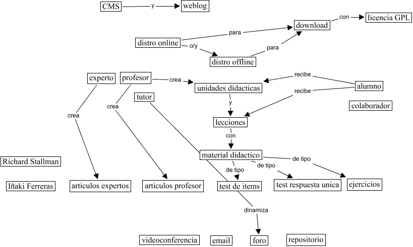 This Concept Map, created with IHMC CmapTools, has information related to: zopelana_1_28_2003_1042, tutor dinamiza foro, alumno recibe lecciones, CMS y weblog, profesor crea unidades didacticas, material didactico de tipo test respuesta unica, distro online o/y distro offline, download con licencia GPL, distro offline para download, distro online para download, experto crea articulos expertos, material didactico de tipo ejercicios, alumno recibe unidades didacticas, profesor crea articulos profesor, lecciones con material didactico, unidades didacticas y lecciones, material didactico de tipo test de items