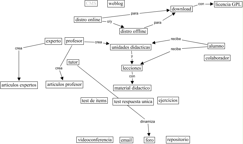 This Concept Map, created with IHMC CmapTools, has information related to: zopelana_1_28_2003_1026, profesor crea articulos profesor, distro offline para download, distro online o/y distro offline, alumno recibe lecciones, unidades didacticas y lecciones, distro online para download, download con licencia GPL, alumno recibe unidades didacticas, experto crea articulos expertos, tutor dinamiza foro, lecciones con material didactico, profesor crea unidades didacticas