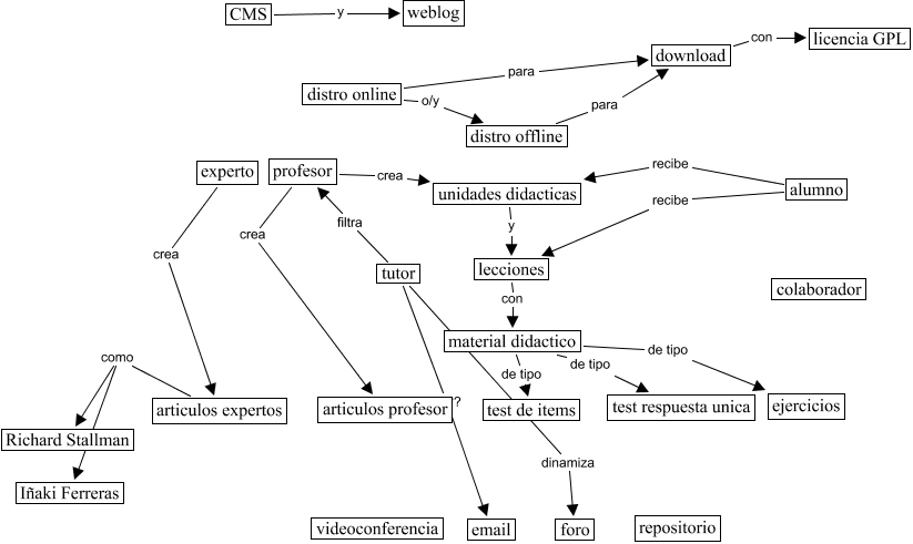 This Concept Map, created with IHMC CmapTools, has information related to: zopelana_1_28_2003_1056, profesor crea unidades didacticas, unidades didacticas y lecciones, tutor dinamiza foro, articulos expertos como Iñaki Ferreras, alumno recibe lecciones, download con licencia GPL, distro offline para download, tutor filtra profesor, articulos expertos como Richard Stallman, distro online o/y distro offline, tutor ???? email, experto crea articulos expertos, material didactico de tipo test respuesta unica, profesor crea articulos profesor, lecciones con material didactico, distro online para download, CMS y weblog, material didactico de tipo ejercicios, material didactico de tipo test de items, alumno recibe unidades didacticas