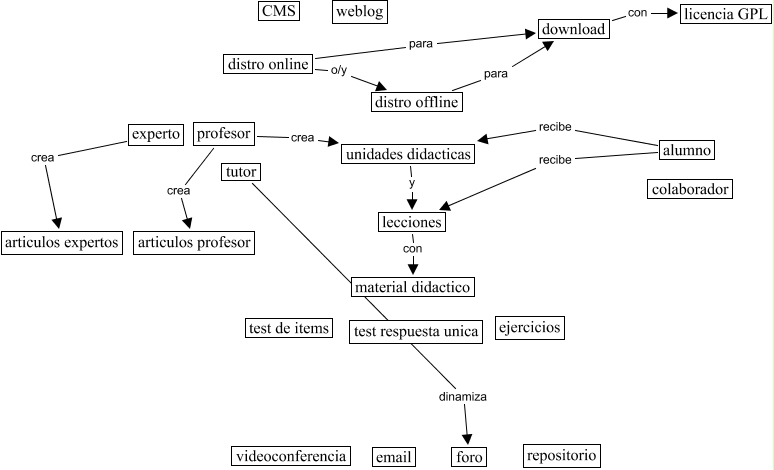 This Concept Map, created with IHMC CmapTools, has information related to: zopelana_1_28_2003_1028, distro online para download, alumno recibe unidades didacticas, alumno recibe lecciones, download con licencia GPL, profesor crea unidades didacticas, distro online o/y distro offline, lecciones con material didactico, unidades didacticas y lecciones, distro offline para download, profesor crea articulos profesor, tutor dinamiza foro, experto crea articulos expertos