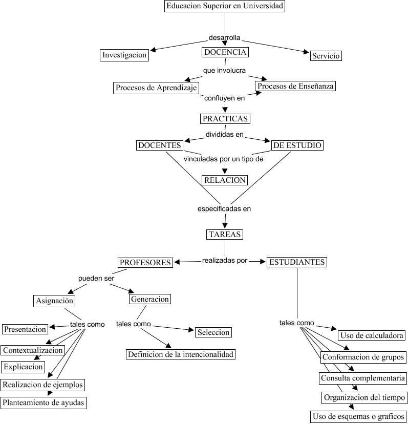 Este Cmap, tiene información relacionada con: prado, DOCENTES vinculadas por un tipo de RELACION, Asignaciòn tales como Contextualizacion, Asignaciòn tales como Realizacion de ejemplos, Procesos de Aprendizaje confluyen en PRACTICAS, ESTUDIANTES tales como Conformacion de grupos, Educacion Superior en Universidad desarrolla DOCENCIA, Asignaciòn tales como Presentacion, DE ESTUDIO especificadas en TAREAS, DE ESTUDIO vinculadas por un tipo de RELACION, PRACTICAS divididas en DOCENTES, Asignaciòn tales como Explicacion, DOCENCIA que involucra Procesos de Enseñanza, Generacion tales como Seleccion, PROFESORES pueden ser Generacion, Educacion Superior en Universidad desarrolla Servicio, Generacion tales como Definicion de la intencionalidad, PROFESORES pueden ser Asignaciòn, DOCENTES especificadas en TAREAS, Asignaciòn tales como Planteamiento de ayudas, Procesos de Aprendizaje confluyen en Procesos de Enseñanza