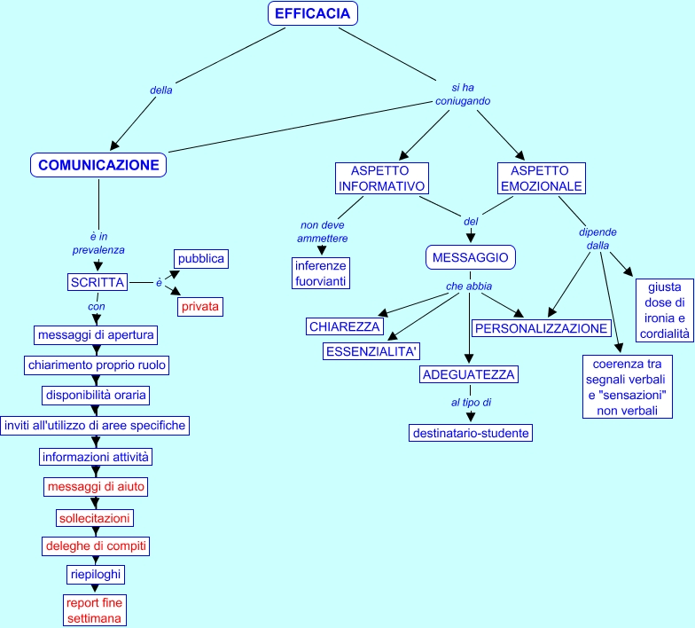 This Concept Map, created with IHMC CmapTools, has information related to: efficacia_comunicazione, ASPETTO EMOZIONALE dipende dalla PERSONALIZZAZIONE, MESSAGGIO che abbia ADEGUATEZZA, ASPETTO EMOZIONALE del MESSAGGIO, SCRITTA con report fine settimana, COMUNICAZIONE si ha coniugando ASPETTO INFORMATIVO, MESSAGGIO che abbia ESSENZIALITA', MESSAGGIO che abbia CHIAREZZA, COMUNICAZIONE è in prevalenza SCRITTA, SCRITTA con disponibilità oraria, EFFICACIA si ha coniugando ASPETTO EMOZIONALE, COMUNICAZIONE si ha coniugando ASPETTO EMOZIONALE, SCRITTA con riepiloghi, SCRITTA con messaggi di apertura, ASPETTO INFORMATIVO non deve ammettere inferenze fuorvianti, MESSAGGIO che abbia PERSONALIZZAZIONE, SCRITTA è pubblica, SCRITTA con informazioni attività, ASPETTO INFORMATIVO del MESSAGGIO, SCRITTA è privata, ASPETTO EMOZIONALE dipende dalla coerenza tra segnali verbali e "sensazioni" non verbali