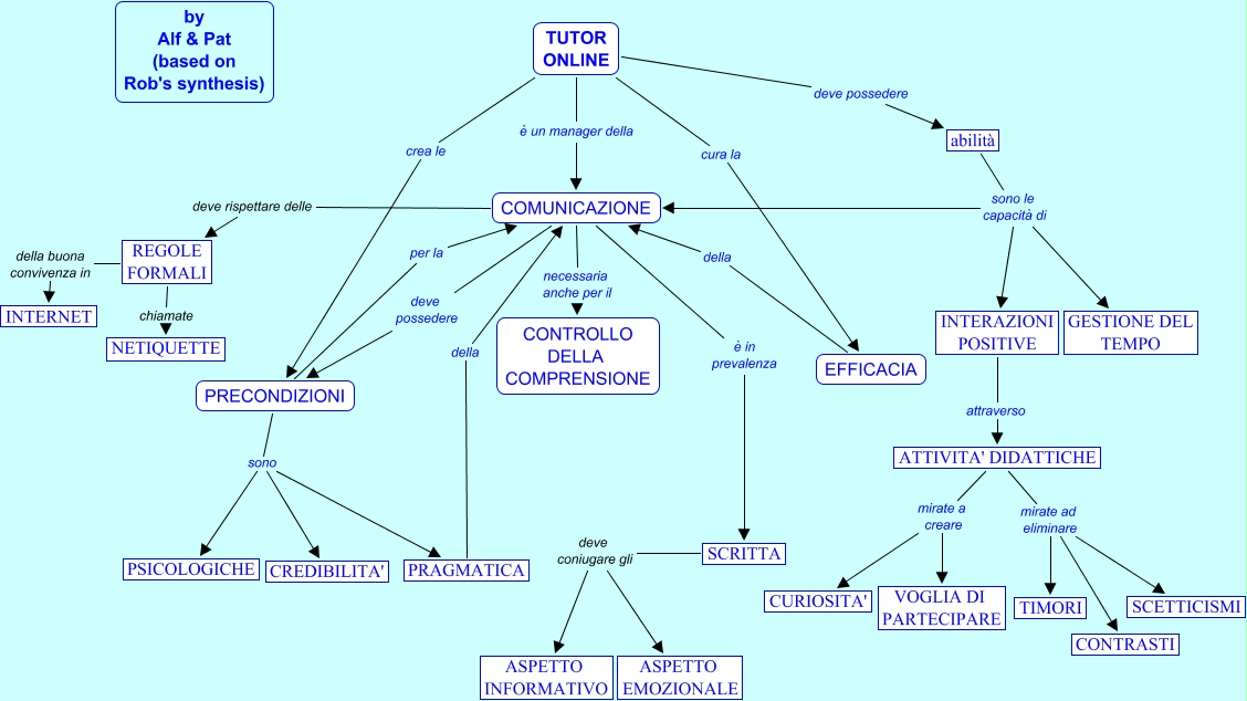 Questa Cmap, creata con IHMC CmapTools, contiene informazioni relative a: comunicazione_TUTOR, COMUNICAZIONE necessaria anche per il CONTROLLO DELLA COMPRENSIONE, PRECONDIZIONI sono PSICOLOGICHE, PRECONDIZIONI sono CREDIBILITA', SCRITTA deve coniugare gli ASPETTO EMOZIONALE, ATTIVITA' DIDATTICHE mirate ad eliminare CONTRASTI, EFFICACIA della COMUNICAZIONE, SCRITTA deve coniugare gli ASPETTO INFORMATIVO, ATTIVITA' DIDATTICHE mirate ad eliminare SCETTICISMI, PRECONDIZIONI per la COMUNICAZIONE, REGOLE FORMALI chiamate NETIQUETTE, ATTIVITA' DIDATTICHE mirate a creare VOGLIA DI PARTECIPARE, abilità sono le capacità di COMUNICAZIONE, REGOLE FORMALI della buona convivenza in INTERNET, COMUNICAZIONE deve possedere PRECONDIZIONI, PRAGMATICA della COMUNICAZIONE, TUTOR ONLINE crea le PRECONDIZIONI, TUTOR ONLINE cura la EFFICACIA, TUTOR ONLINE deve possedere abilità, abilità sono le capacità di INTERAZIONI POSITIVE, INTERAZIONI POSITIVE attraverso ATTIVITA' DIDATTICHE