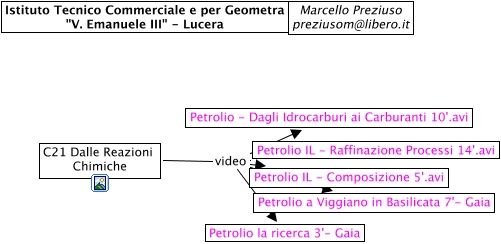 This Concept Map, created with IHMC CmapTools, has information related to: C21 Dalle Reazioni Chimiche, C21 Dalle Reazioni Chimiche video Petrolio - Dagli Idrocarburi ai Carburanti 10'.avi, C21 Dalle Reazioni Chimiche video Petrolio a Viggiano in Basilicata 7'- Gaia, C21 Dalle Reazioni Chimiche video Petrolio la ricerca 3'- Gaia, C21 Dalle Reazioni Chimiche video Petrolio IL - Composizione 5'.avi, C21 Dalle Reazioni Chimiche video Petrolio IL - Raffinazione Processi 14'.avi