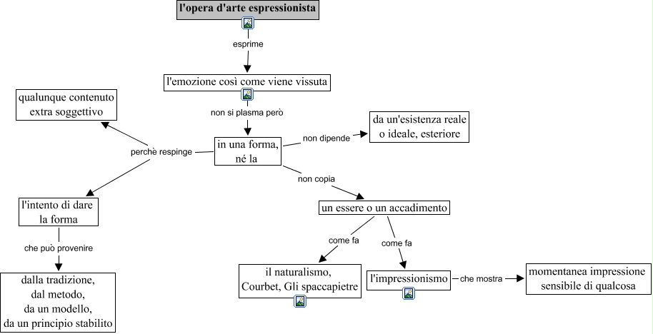 Questa Cmap, creata con IHMC CmapTools, contiene informazioni relative a: SImmel_espressionismo, l'opera d'arte espressionista esprime l'emozione così come viene vissuta, l'intento di dare la forma che può provenire dalla tradizione, dal metodo, da un modello, da un principio stabilito, in una forma, né la non dipende da un'esistenza reale o ideale, esteriore, un essere o un accadimento come fa l'impressionismo, in una forma, né la non copia un essere o un accadimento, l'emozione così come viene vissuta non si plasma però in una forma, né la, in una forma, né la perchè respinge qualunque contenuto extra soggettivo, in una forma, né la perchè respinge l'intento di dare la forma, un essere o un accadimento come fa il naturalismo, Courbet, Gli spaccapietre, l'impressionismo che mostra momentanea impressione sensibile di qualcosa