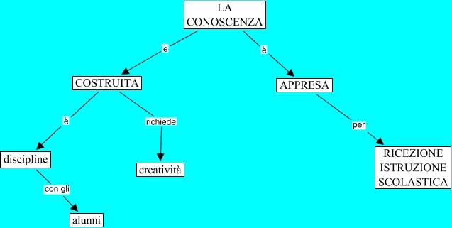 This Concept Map, created with IHMC CmapTools, has information related to: _la conoscenza, COSTRUITA è discipline, LA CONOSCENZA è COSTRUITA, APPRESA per RICEZIONE ISTRUZIONE SCOLASTICA, LA CONOSCENZA è APPRESA, COSTRUITA richiede creatività, discipline con gli alunni