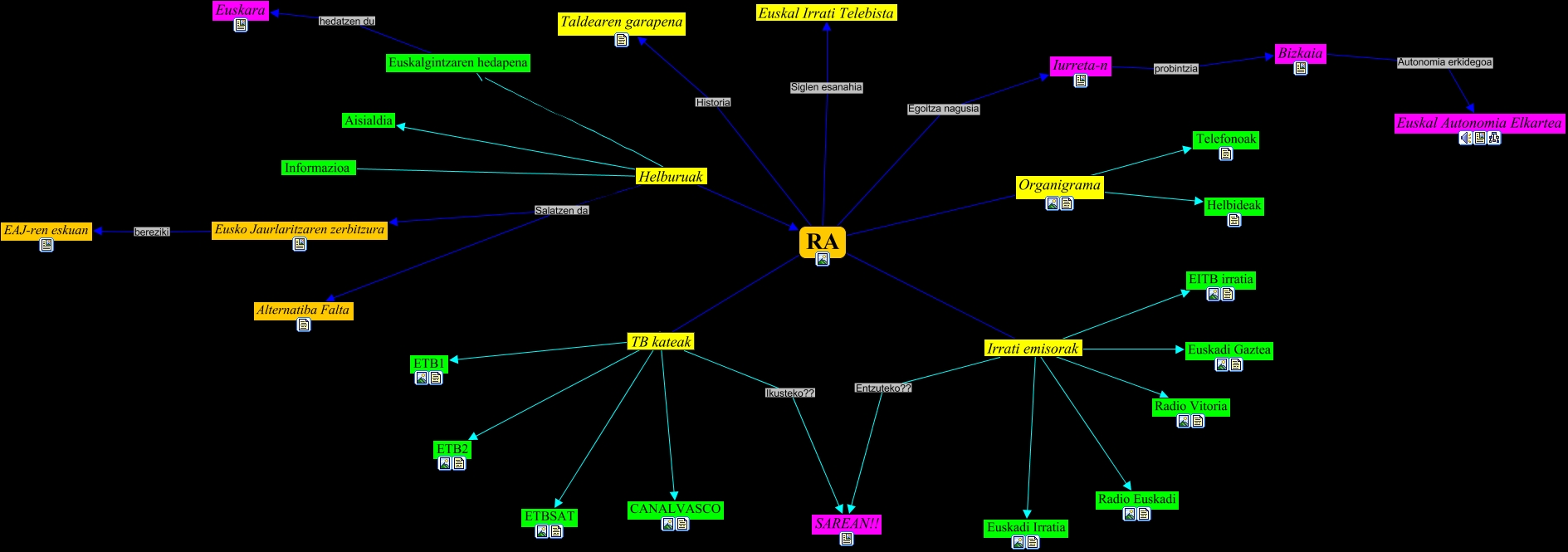 Este Cmap, tiene información relacionada con: Tamayo_Etxeberria, RA ???? Euskadi Irratia, Helburuak Salatzen da Eusko Jaurlaritzaren zerbitzura, Informazioa Euskalgintzaren hedapena, Helburuak Salatzen da Eusko Jaurlaritzaren zerbitzura, RA ETB2, Euskalgintzaren hedapena hedatzen du Euskara, RA ???? Helbideak, Informazioa Euskalgintzaren hedapena, RA ???? Euskadi Gaztea, Helburuak Salatzen da Alternatiba Falta, RA ???? Radio Vitoria, Informazioa Euskalgintzaren hedapena, RA Historia Taldearen garapena, Helburuak Salatzen da Alternatiba Falta, RA Siglen esanahia Euskal Irrati Telebista, RA Egoitza nagusia Iurreta-n, RA CANALVASCO, RA ???? Radio Euskadi, RA ETB1, Iurreta-n probintzia Bizkaia