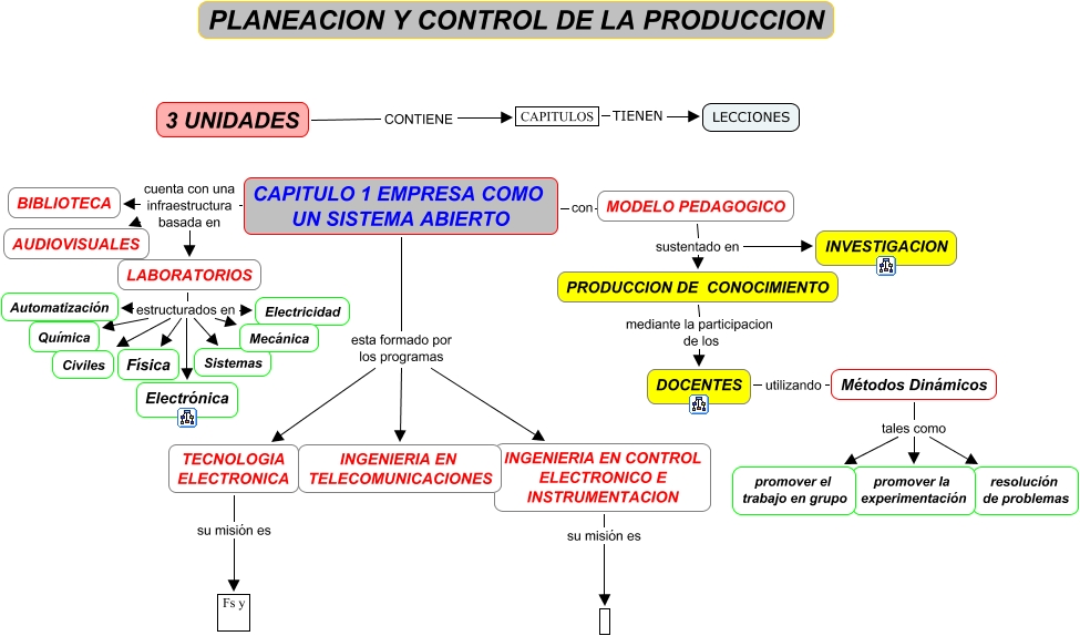 Este Cmap, tiene información relacionada con: electronica, INGENIERIA EN CONTROL ELECTRONICO E INSTRUMENTACION su misión es, PRODUCCION DE CONOCIMIENTO mediante la participacion de los DOCENTES, Métodos Dinámicos tales como resolución de problemas, CAPITULO 1 EMPRESA COMO UN SISTEMA ABIERTO esta formado por los programas TECNOLOGIA ELECTRONICA, LABORATORIOS estructurados en Civiles, TECNOLOGIA ELECTRONICA su misión es Fs y, DOCENTES utilizando Métodos Dinámicos, CAPITULO 1 EMPRESA COMO UN SISTEMA ABIERTO esta formado por los programas INGENIERIA EN CONTROL ELECTRONICO E INSTRUMENTACION, LABORATORIOS estructurados en Automatización, LABORATORIOS estructurados en Electricidad, CAPITULO 1 EMPRESA COMO UN SISTEMA ABIERTO cuenta con una infraestructura basada en AUDIOVISUALES, 3 UNIDADES CONTIENE CAPITULOS, LABORATORIOS estructurados en Electrónica, LABORATORIOS estructurados en Física, CAPITULOS TIENEN LECCIONES, MODELO PEDAGOGICO sustentado en PRODUCCION DE CONOCIMIENTO, Métodos Dinámicos tales como promover la experimentación, LABORATORIOS estructurados en Sistemas, MODELO PEDAGOGICO sustentado en INVESTIGACION, LABORATORIOS estructurados en Química