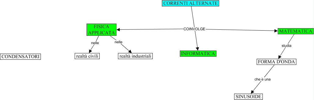 Questa Cmap, creata con IHMC CmapTools, contiene informazioni relative a: CORRENTI ALTERNATE, FORMA D'ONDA che è una SINUSOIDE, CORRENTI ALTERNATE COINVOLGE FISICA APPLICATA, MATEMATICA studia FORMA D'ONDA, CORRENTI ALTERNATE COINVOLGE MATEMATICA, CORRENTI ALTERNATE COINVOLGE INFORMATICA, FISICA APPLICATA nelle realtà industriali, FISICA APPLICATA nelle realtà civili