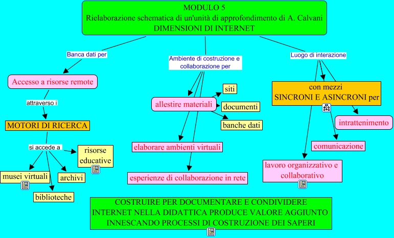 INTERNET, MOTORI DI RICERCA si accede a archivi, allestire materiali documenti, MOTORI DI RICERCA si accede a biblioteche, MODULO 5 Rielaborazione schematica di un'unità di approfondimento di A. Calvani DIMENSIONI DI INTERNET Luogo di interazione comunicazione, allestire materiali siti, MODULO 5 Rielaborazione schematica di un'unità di approfondimento di A. Calvani DIMENSIONI DI INTERNET Ambiente di costruzione e collaborazione per esperienze di collaborazione in rete, MODULO 5 Rielaborazione schematica di un'unità di approfondimento di A. Calvani DIMENSIONI DI INTERNET Luogo di interazione con mezzi SINCRONI E ASINCRONI per, MODULO 5 Rielaborazione schematica di un'unità di approfondimento di A. Calvani DIMENSIONI DI INTERNET Banca dati per Accesso a risorse remote, allestire materiali banche dati, Accesso a risorse remote attraverso i MOTORI DI RICERCA