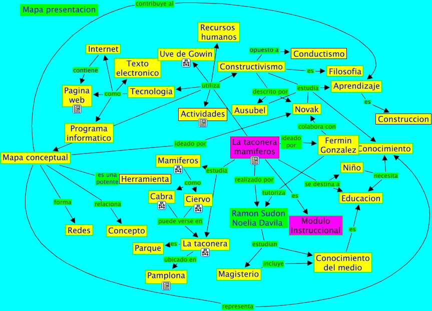 This Concept Map, created with IHMC CmapTools, has information related to: Presentacion_dot, La taconera mamiferos utiliza Actividades, Constructivismo opuesto a Conductismo, Mamiferos como Cabra, La taconera mamiferos estudia Mamiferos, Tecnologia como Internet, Ausubel estudia Conocimiento, Mapa conceptual ideado por Novak, Mapa conceptual contribuye al Aprendizaje, La taconera mamiferos utiliza Uve de Gowin, Aprendizaje es Construccion, Fermin Gonzalez colabora con Novak, La taconera mamiferos ideado por Fermin Gonzalez, La taconera es Parque, La taconera mamiferos es Modulo Instruccional, Ramon Sudon Noelia Davila estudian Magisterio, La taconera mamiferos utiliza Tecnologia, La taconera mamiferos se destina a Niño, Ramon Sudon Noelia Davila estudian Conocimiento del medio, Magisterio incluye Conocimiento del medio, La taconera mamiferos se destina a Educacion