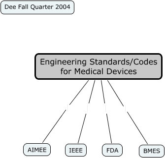 This Concept Map, created with IHMC CmapTools, has information related to: Dee_Fall_Concept, Engineering Standards/Codes for Medical Devices IEEE, Engineering Standards/Codes for Medical Devices AIMEE, Engineering Standards/Codes for Medical Devices BMES, Engineering Standards/Codes for Medical Devices FDA
