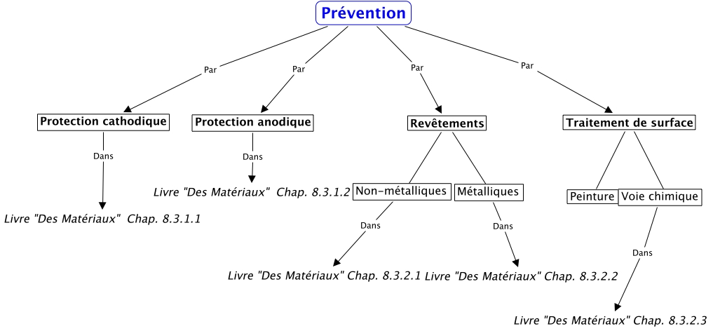 Prévention, Protection anodique Dans Livre "Des Matériaux" Chap. 8.3.1.2, Prévention Par Protection cathodique, Non-métalliques Dans Livre "Des Matériaux" Chap. 8.3.2.1, Prévention Par Protection anodique, Métalliques Dans Livre "Des Matériaux" Chap. 8.3.2.2, Prévention Par Revêtements, Traitement de surface Peinture, Protection cathodique Dans Livre "Des Matériaux" Chap. 8.3.1.1, Revêtements Métalliques, Voie chimique Dans Livre "Des Matériaux" Chap. 8.3.2.3