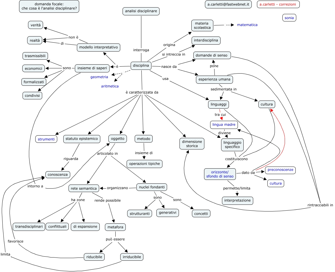 This Concept Map, created with IHMC CmapTools, has information related to: analisi disciplinare, disciplina è caratterizzata da oggetto, domande di senso rintracciabili in dimensione storica, disciplina nasce da domande di senso, statuto epistemico riguarda conoscenza, riducibile favorisce conoscenza, rete semantica rende possibile metafora, linguaggi tra cui lingua madre, disciplina è caratterizzata da linguaggio specifico, nuclei fondanti sono concetti, oggetto articolato in nuclei fondanti, disciplina geometria, nuclei fondanti sono strutturanti, disciplina è insieme di saperi, nuclei fondanti sono generativi, esperienza umana rintracciabili in dimensione storica, lingua madre diviene linguaggio specifico, materia scolastica matematica, orizzonte/ sfondo di senso dato da lingua madre, metafora può essere irriducibile, orizzonte/ sfondo di senso permette/limita interpretazione