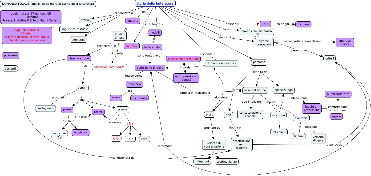 This Concept Map, created with IHMC CmapTools, has information related to: storia letteratura, percorso ha asse del tempo, storia della letteratura si connette a storia, diverse concezioni si concretizzano/esplicano approcci critici, poesia può essere teatro, asse del tempo implica sincronia, letterarietà sono tentativo di definizione di bello, classificazione di generi, diacronia è lineare, oggetto è studio di testi, poesia ???? ????, 1800 ha origini Vichiane, percorso definito da spazio/luogo, percorso ha inizio, diacronia possiede velocità diverse, storia della letteratura è percorso, accettazione nel sistema dipende da criteri, sincronia in spazio/luogo, generi sono teatro, generi sono prosa, prosa divisa in narrativa