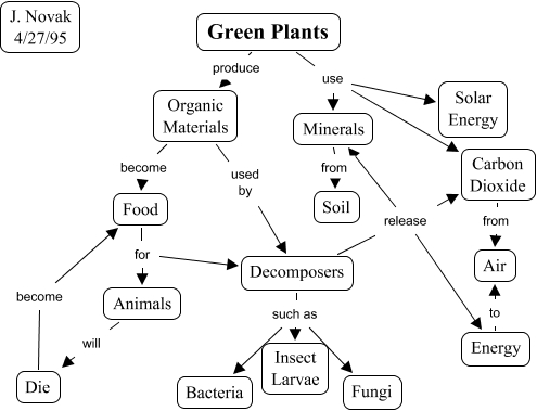 This Concept Map, created with IHMC CmapTools, has information related to: Decomposers, Decomposers release Energy, Organic Materials become Food, Decomposers such as Fungi, Organic Materials used by Decomposers, Food for Animals, Decomposers such as Bacteria, Decomposers release Carbon Dioxide, Decomposers release Minerals, Decomposers such as Insect Larvae, Die become Food, Green Plants use Carbon Dioxide, Carbon Dioxide from Air, Green Plants use Solar Energy, Animals will Die, Green Plants use Minerals, Minerals from Soil, Food for Decomposers, Green Plants produce Organic Materials, Energy to Air