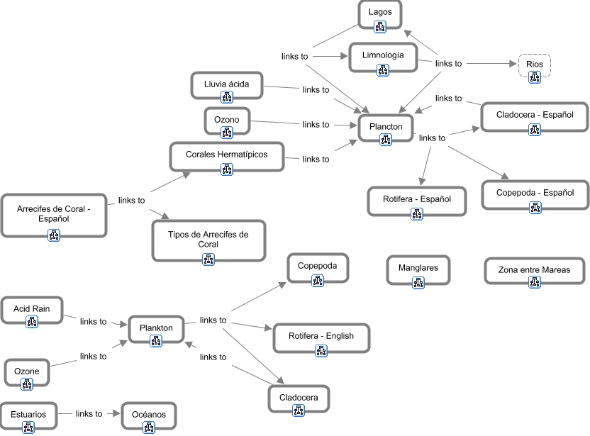 This Concept Map, created with IHMC CmapTools, has information related to: Atlas Ciencias - Science Atlas, Plancton links to Copepoda - Español, Plancton links to Cladocera - Español, Corales Hermatípicos links to Plancton, Plankton links to Cladocera, Lagos links to Limnología, Ozono links to Plancton, Limnología links to Plancton, Plancton links to Rotifera - Español, Plankton links to Rotifera - English, Lluvia ácida links to Plancton, Arrecifes de Coral - Español links to Corales Hermatípicos, Ozone links to Plankton, Limnología links to Lagos, Estuarios links to Océanos, Lagos links to Plancton, Cladocera links to Plankton, Acid Rain links to Plankton, Limnología links to Rios, Cladocera - Español links to Plancton, Plankton links to Copepoda