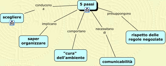 This Concept Map, created with IHMC CmapTools, has information related to: 5_PASSI_WEB, 5 passi presuppongono rispetto delle regole negoziate, 5 passi conducono a scegliere, 5 passi implicano saper organizzare, 5 passi comportano "cura" dell'ambiente, 5 passi necessitano di comunicabilità