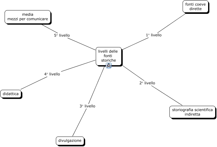 This Concept Map, created with IHMC CmapTools, has information related to: LIVELLI_DELLE_FONTI_STORIC, livelli delle fonti storiche 1° livello fonti coeve dirette, livelli delle fonti storiche 2° livello storiografia scientifica indiretta, livelli delle fonti storiche 5° livello media mezzi per comunicare, livelli delle fonti storiche 4° livello didattica, livelli delle fonti storiche 3° livello divulgazione