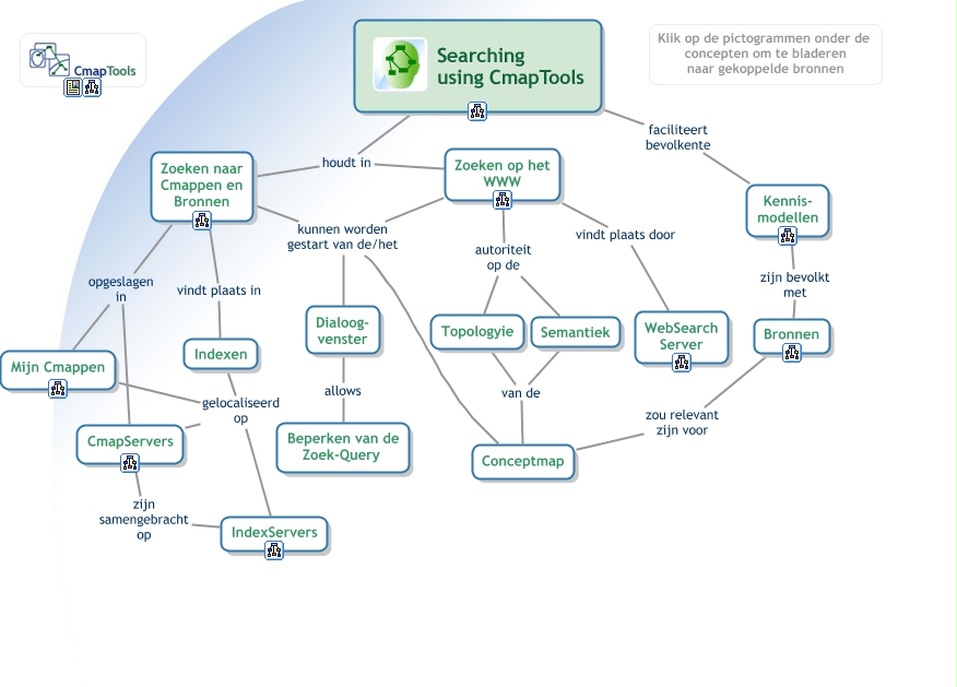 This Concept Map, created with IHMC CmapTools, has information related to: CmapTools - Zoeken, Indexen gelocaliseerd op Mijn Cmappen, Zoeken naar Cmappen en Bronnen kunnen worden gestart van de/het Dialoog- venster, Zoeken naar Cmappen en Bronnen vindt plaats in Indexen, Zoeken op het WWW autoriteit op de Topologyie, Zoeken naar Cmappen en Bronnen opgeslagen in Mijn Cmappen, Topologyie van de Conceptmap, Zoeken op het WWW kunnen worden gestart van de/het Conceptmap, Dialoog- venster allows Beperken van de Zoek-Query, Zoeken op het WWW autoriteit op de Semantiek, Zoeken op het WWW kunnen worden gestart van de/het Dialoog- venster, Indexen gelocaliseerd op IndexServers, Zoeken naar Cmappen en Bronnen opgeslagen in CmapServers, Bronnen zou relevant zijn voor Conceptmap, Zoeken op het WWW vindt plaats door WebSearch Server, Searching using CmapTools faciliteert bevolkente Kennis- modellen, Indexen gelocaliseerd op CmapServers, Zoeken naar Cmappen en Bronnen kunnen worden gestart van de/het Conceptmap, Searching using CmapTools houdt in Zoeken op het WWW, Searching using CmapTools houdt in Zoeken naar Cmappen en Bronnen, Semantiek van de Conceptmap