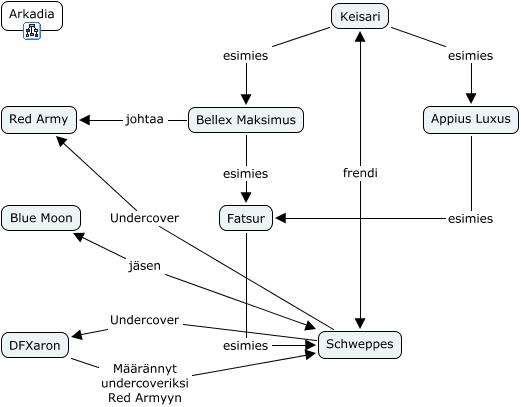 This Concept Map, created with IHMC CmapTools, has information related to: glorantha, DFXaron Määrännyt undercoveriksi Red Armyyn Schweppes, Fatsur esimies Schweppes, Bellex Maksimus esimies Fatsur, Schweppes Undercover Red Army, Bellex Maksimus johtaa Red Army, Keisari esimies Bellex Maksimus, Appius Luxus esimies Fatsur, Keisari esimies Appius Luxus, Schweppes Undercover DFXaron