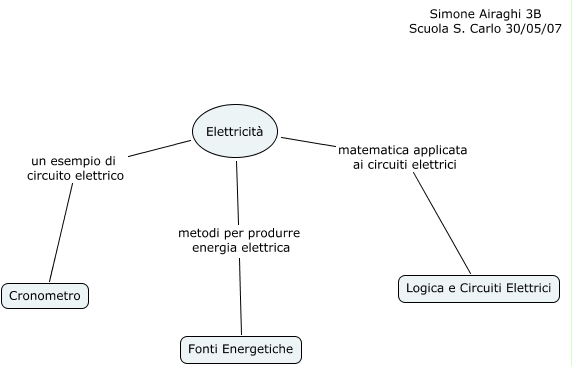 This Concept Map, created with IHMC CmapTools, has information related to: Mappa Scientifica, Elettricità matematica applicata ai circuiti elettrici Logica e Circuiti Elettrici, Elettricità un esempio di circuito elettrico Cronometro, Elettricità metodi per produrre energia elettrica Fonti Energetiche