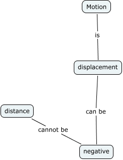 This Concept Map, created with IHMC CmapTools, has information related to: kim cmap motion, Motion is displacement, displacement can be negative, distance cannot be negative